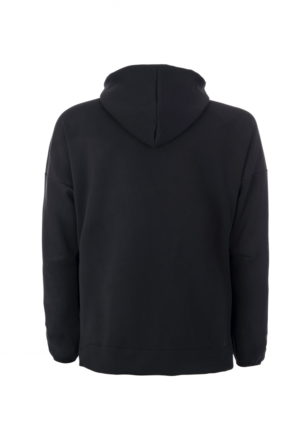 Sehr durchdacht ist auch die Hose, da sie nach unten schmaler zusammenläuft und somit schön angenehm an der Fußfessel liegt. Beim Sport stört also kein überflüssiger Stoff, es flattert nichts rum und die Gefahr irgendwo hängen zu bleiben reduziert sich auf ein Minimum. Sollte man es aber dennoch etwas luftiger am Bein haben wollen, kann man einfach und praktisch den Reißverschluss, der vom Knöchel bis ca. zum Knie verläuft, öffnen. Auch hier ist unser weißes Logo auf dem linken Hosenbein zu finden.