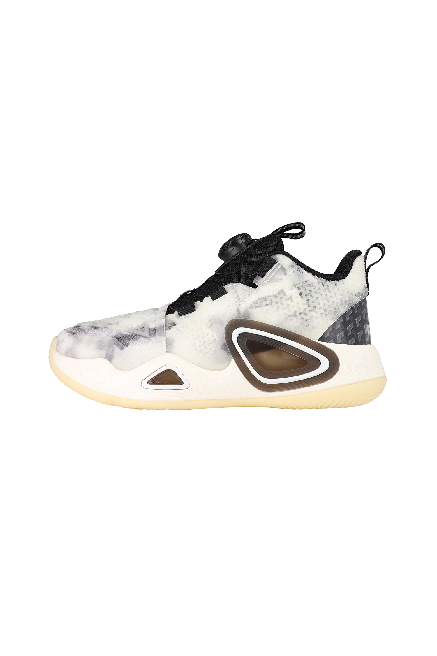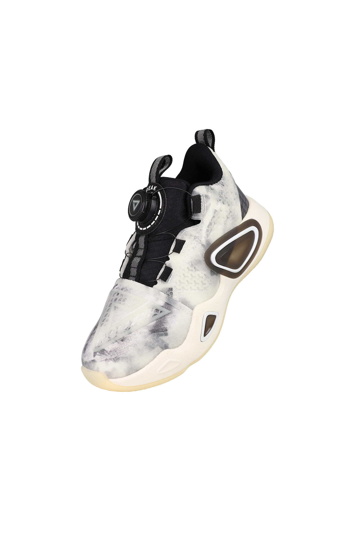 Der auffällig designte Peak Basketballschuh kombiniert moderne Performance‑Technologie mit einem dynamischen, multicolor Look. Das Obermaterial besteht aus strapazierfähigen synthetischen Mesh‑Elementen und transparenten Overlays, die für Stabilität und Atmungsaktivität sorgen. Die innovative Verschlusslösung mit Drehverschluss ermöglicht einen festen, individuell anpassbaren Sitz. Die voluminöse, seitlich verstärkte Mittelsohle bietet optimale Dämpfung und Halt bei schnellen Richtungswechseln. Eine durchscheinende Außensohle sorgt für Grip auf Indoor‑ und Outdoor‑Courts.