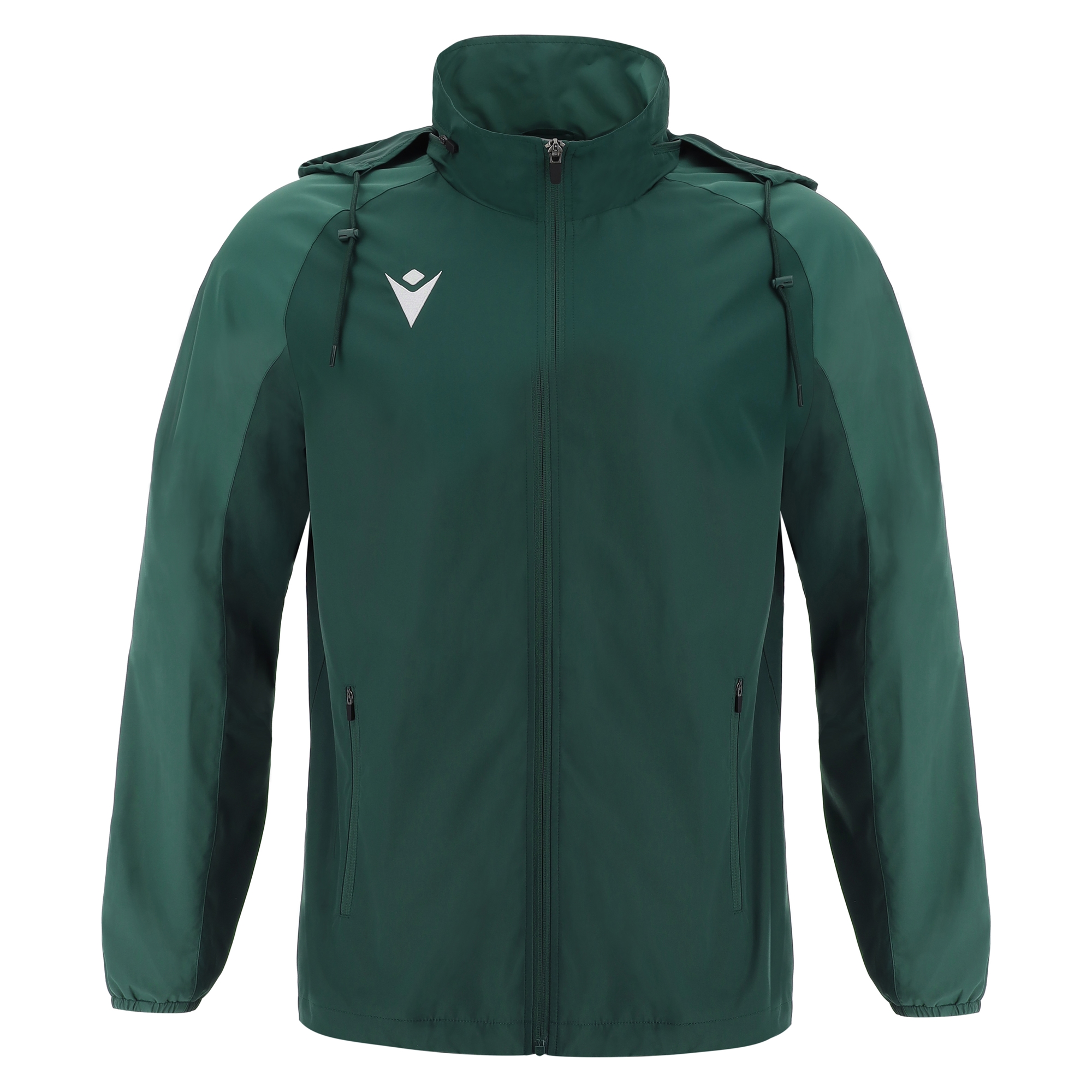 Jacke aus wasserfestem Material mit Mesh-Futter, schützt vor Nässe und ist zugleich atmungsaktiv. Durchgehender umgekehrter Reißverschluss aus Nylon mit selbstsperrendem Schieber. Seitentaschen mit Reißverschluss. Verstaubare Kapuze im Kragen, elastische Ärmelbündchen und Saum mit verstellbarem Kordelzug. Ton-in-Ton-Einsätze an den Ärmeln.
